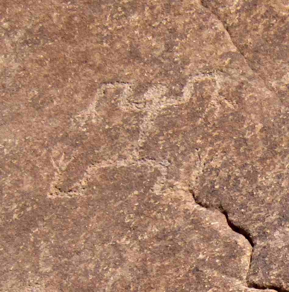 Petroglyphs and pictographs can be difficult to see depending on lighting conditions (bright sun, flat light due to cast skies, shadowing, very dim light) rock surface conditions, and repatination etc.). A color processing software package, Dstretch, can sometimes bring out features more clearly. The mobile phone Dstretch app is available for use at the recording site. Picture (8/8) displays a difficult to see petroglyph.