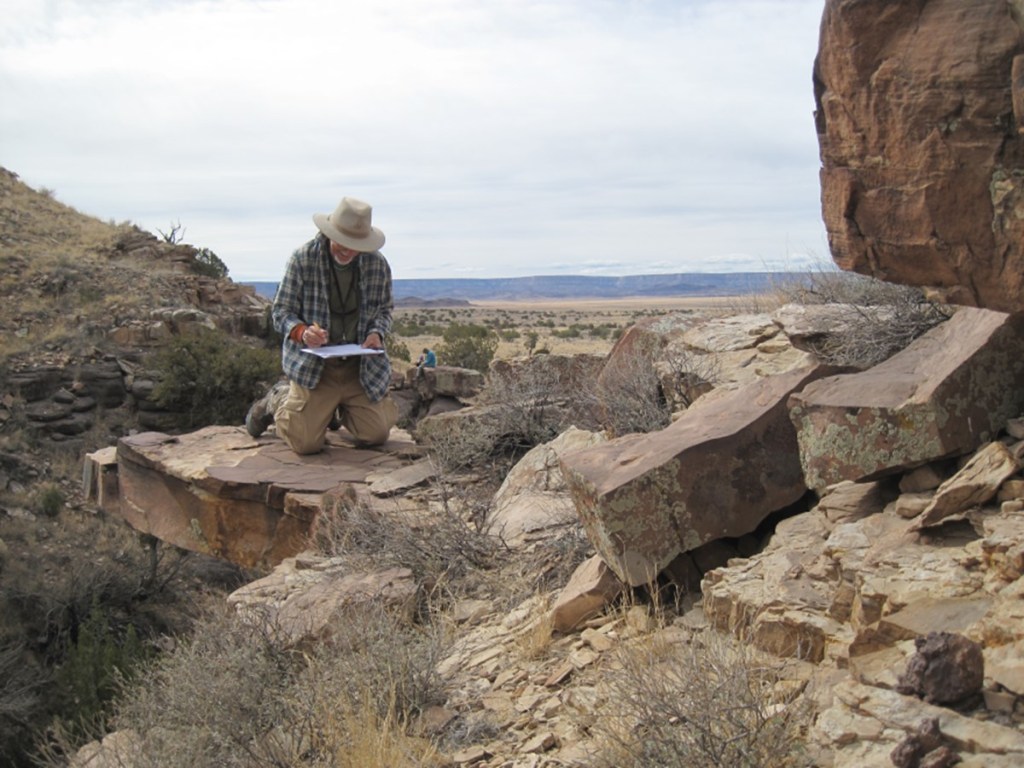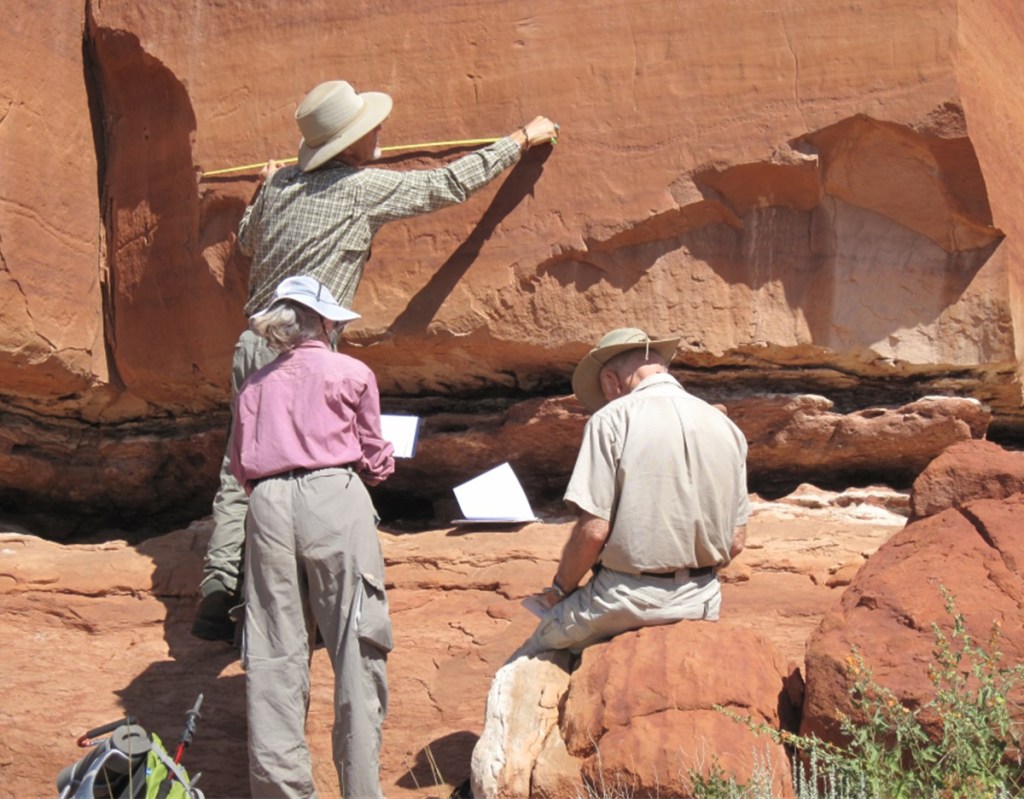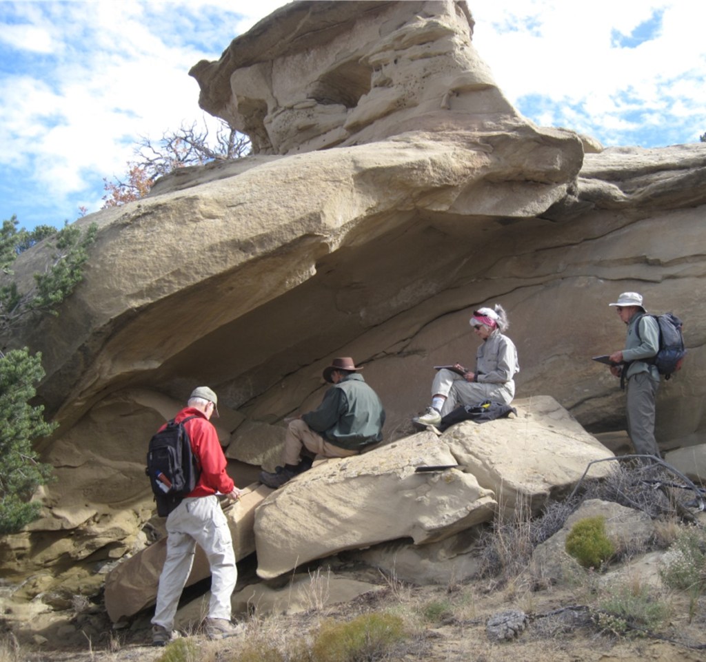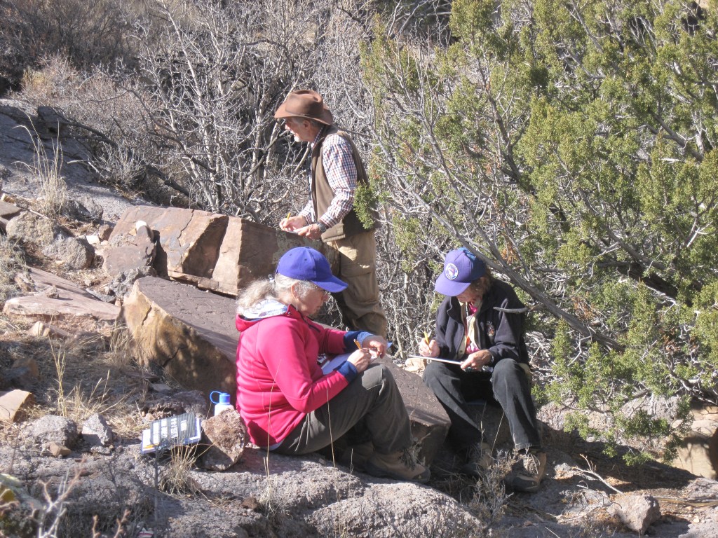 Before starting field recording work, team members completed rock art data recording training based on the Archaeological Society of New Mexico (ASNM) Rock Art Council guidelines for recording collected data on the standard recording forms. Rock Art Council – Archaeological Society of New Mexico (archaeologicalsocietynm.org) Also BLM map reading, map terminology and Global Positioning System (GPS) use classes were completed. This information is used when filling out the rock art recording forms (Mapper’s Notes and Photo Data Sheets).